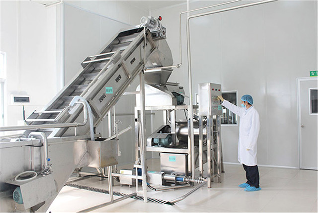 梨汁飲料生產(chǎn)線的一般工藝為:選果機(jī)-波浪沖洗劑-破碎機(jī)-打漿機(jī)-酶解罐-高速混料缸-配料罐-過濾器-均質(zhì)機(jī)-超高溫瞬時滅菌機(jī)-熱水罐-高位暫存罐-沖瓶機(jī)-灌裝機(jī)-旋蓋機(jī)-后包裝系統(tǒng)等設(shè)備。