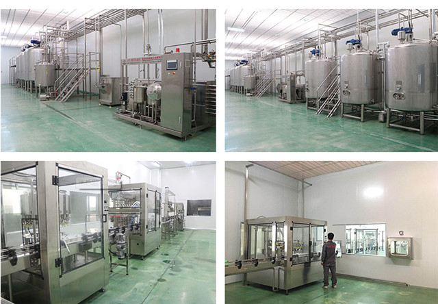 生產(chǎn)線(xiàn)主要有:水處理部分.CIP清洗部分.化糖部分.調(diào)配部分.滅菌均質(zhì)部分.灌裝系統(tǒng).包裝部分等。