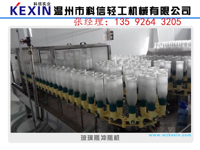 溫州科信全自動(dòng)洗瓶機(jī)采用循環(huán)熱水沖洗、溫水預(yù)熱、凈水洗凈等多段處理,具有節(jié)水、節(jié)熱能等優(yōu)點(diǎn);