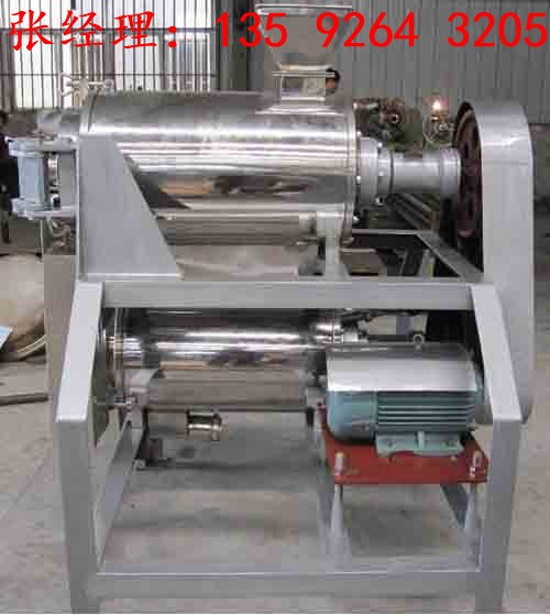 破碎后的果肉、汁、皮通過進料斗進入螺旋榨汁機,由于螺旋沿著料渣出口方向底徑逐漸加大而螺距逐漸減少,當物料被螺旋推進時,因螺旋腔體積縮小,形成對物料的壓榨。螺旋主軸的轉(zhuǎn)動方向從進料斗向渣槽方向看去,為順時針方向。原料加入進料斗中,在螺旋的推進下受壓,其壓榨的汁液通過過濾網(wǎng)流入底部的盛汁器,而廢料則通過螺旋及調(diào)壓的錐形部分之間形成的環(huán)狀空隙排出,調(diào)壓頭沿軸向的移動可調(diào)整空隙的大小。用于順時針(從設(shè)備的出渣槽向進料斗端看轉(zhuǎn)動手輪軸承座時,調(diào)壓頭向左,空隙即縮小、反之則空隙變大。)改變空隙的大小,即調(diào)整排渣的阻力,即可改變出渣率,但如果空隙過小,在強力擠壓下,部分渣的顆粒會和汁一起通過過濾網(wǎng)被擠出,盡管出汁增加,但汁的質(zhì)量相對下降,空隙的大小應視用戶具體工藝要求而定。從而達到汁與渣自動分離的目的。